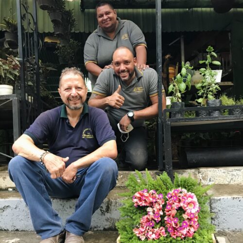 Para cerrar, hemos dejado de último (pero no menos importantes) a los muchachos! ellos son los que hacen magia con las flores, los que tienen buena mano para sembrar las matas y la fuerza para cargar sacos de tierra! La mayoría tiene añoooss en la empresa, ya conocen a los clientes y sus gustos.