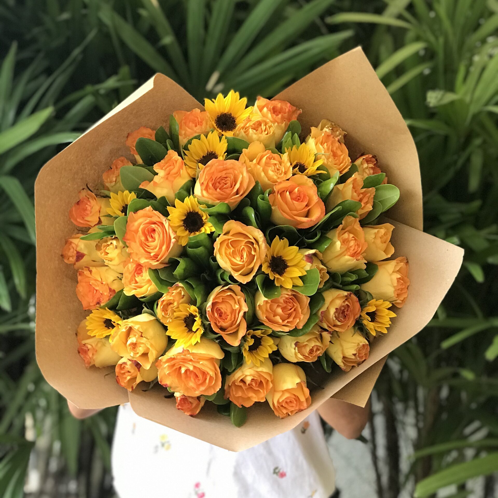 3 doc de rosas + 1 paq de girasoles + 2 follajes