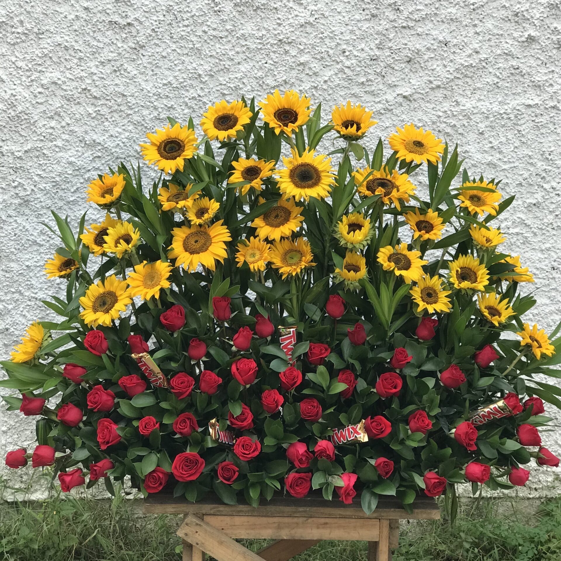 32 girasoles + 10 doc de rosas + 10 follajes